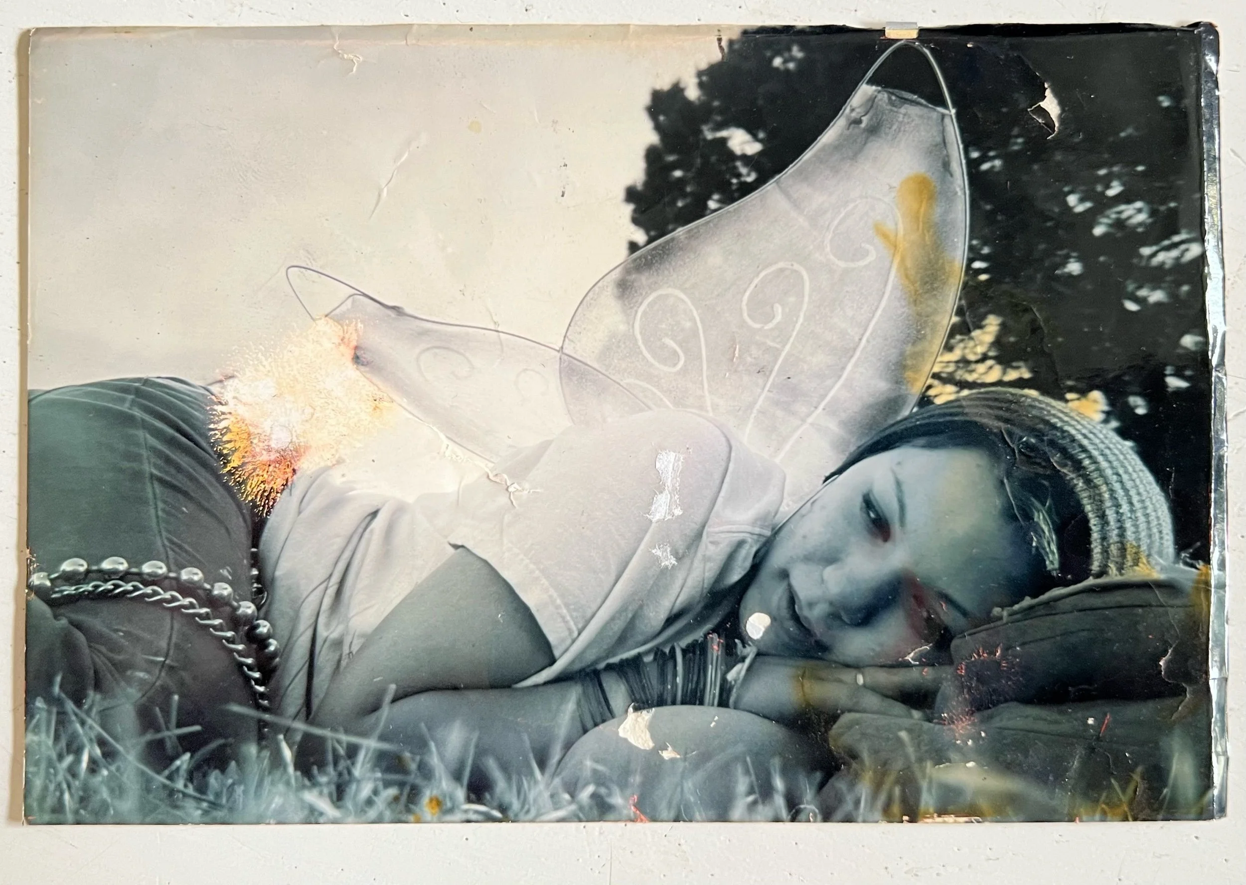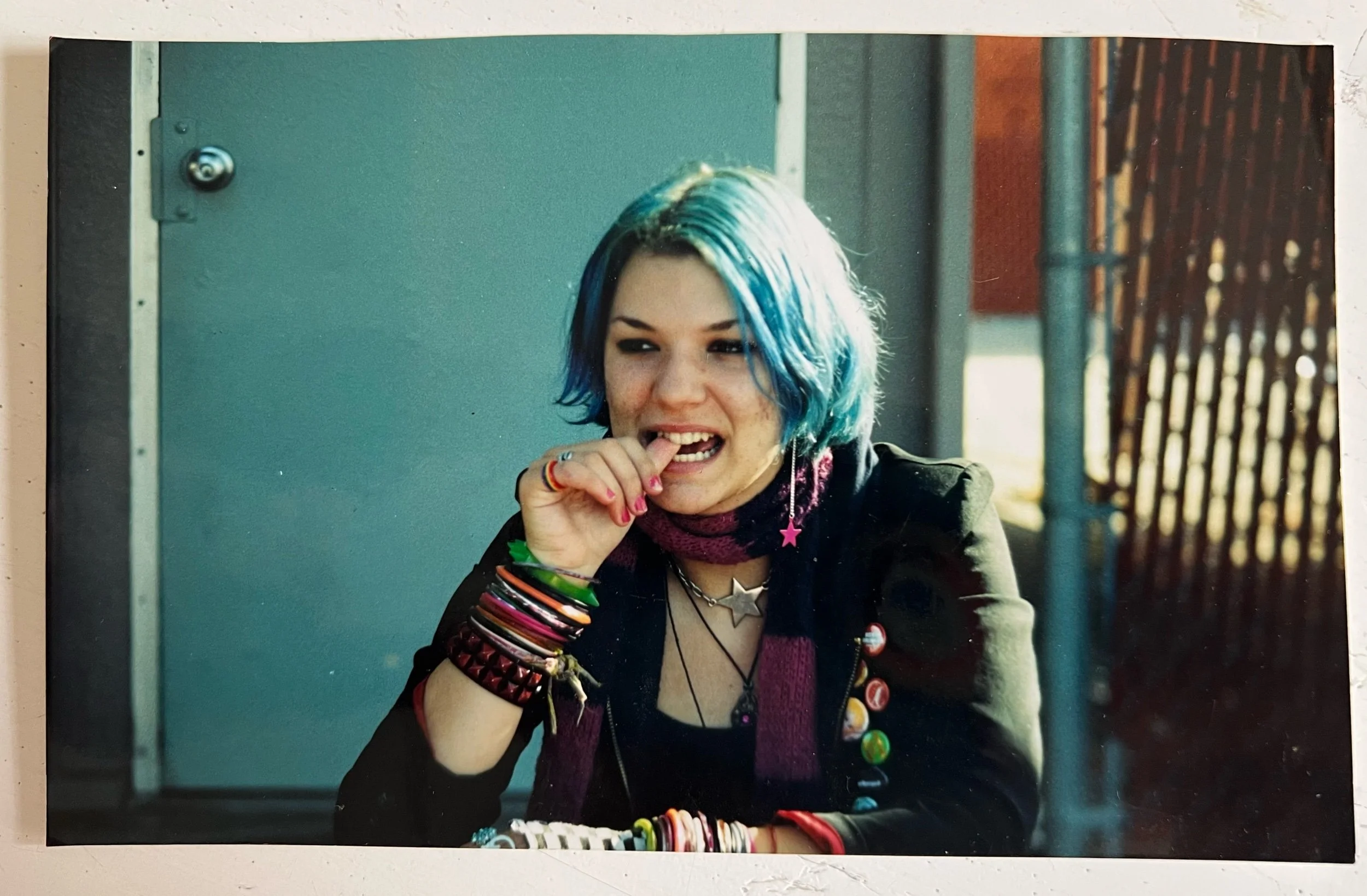 Yup- those were my fairy wings, I had multiple pairs and I wore them often! The jelly bracelets that show you it is exactly 2004, paired with the thrifted little boys suit jacket styled with buttons and charms inspired by Cyndi Lauper.