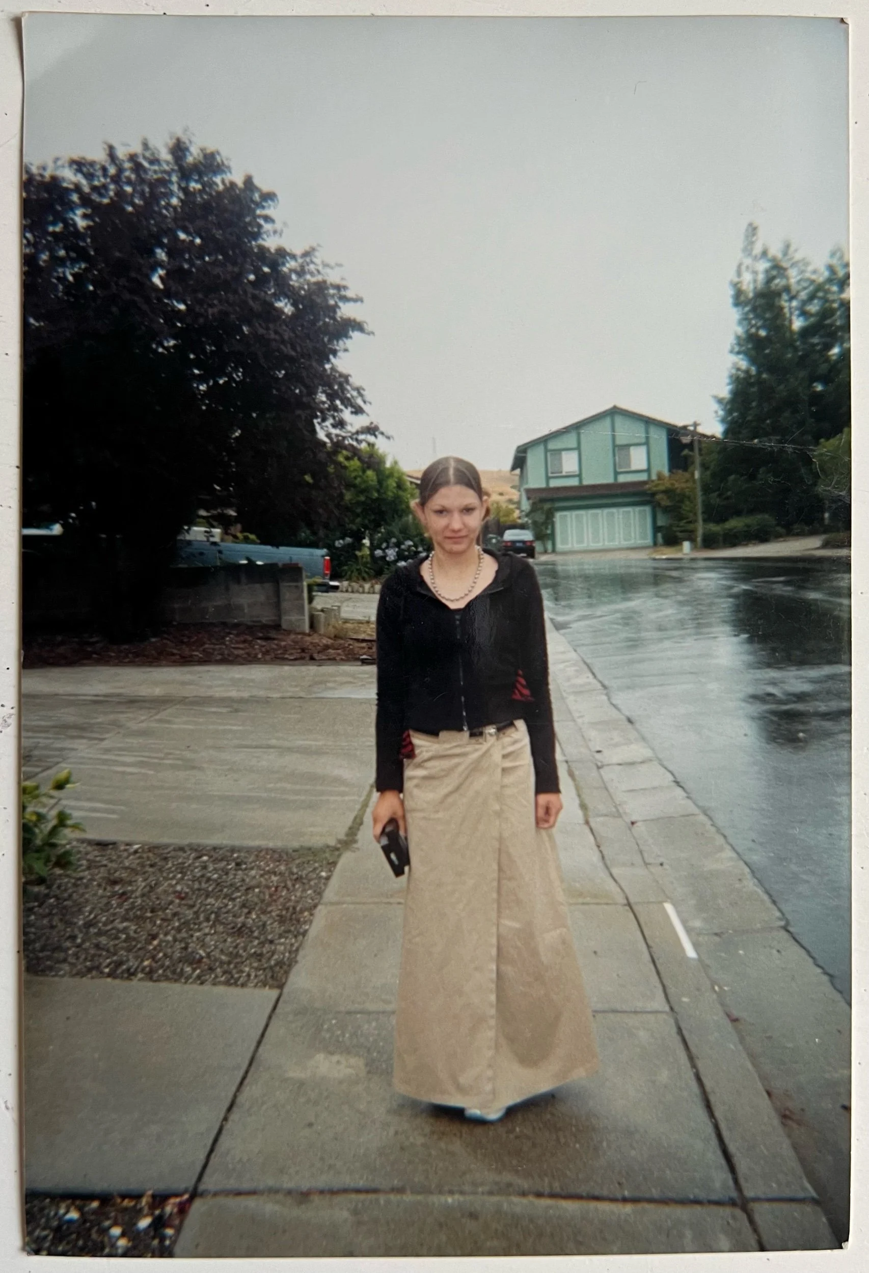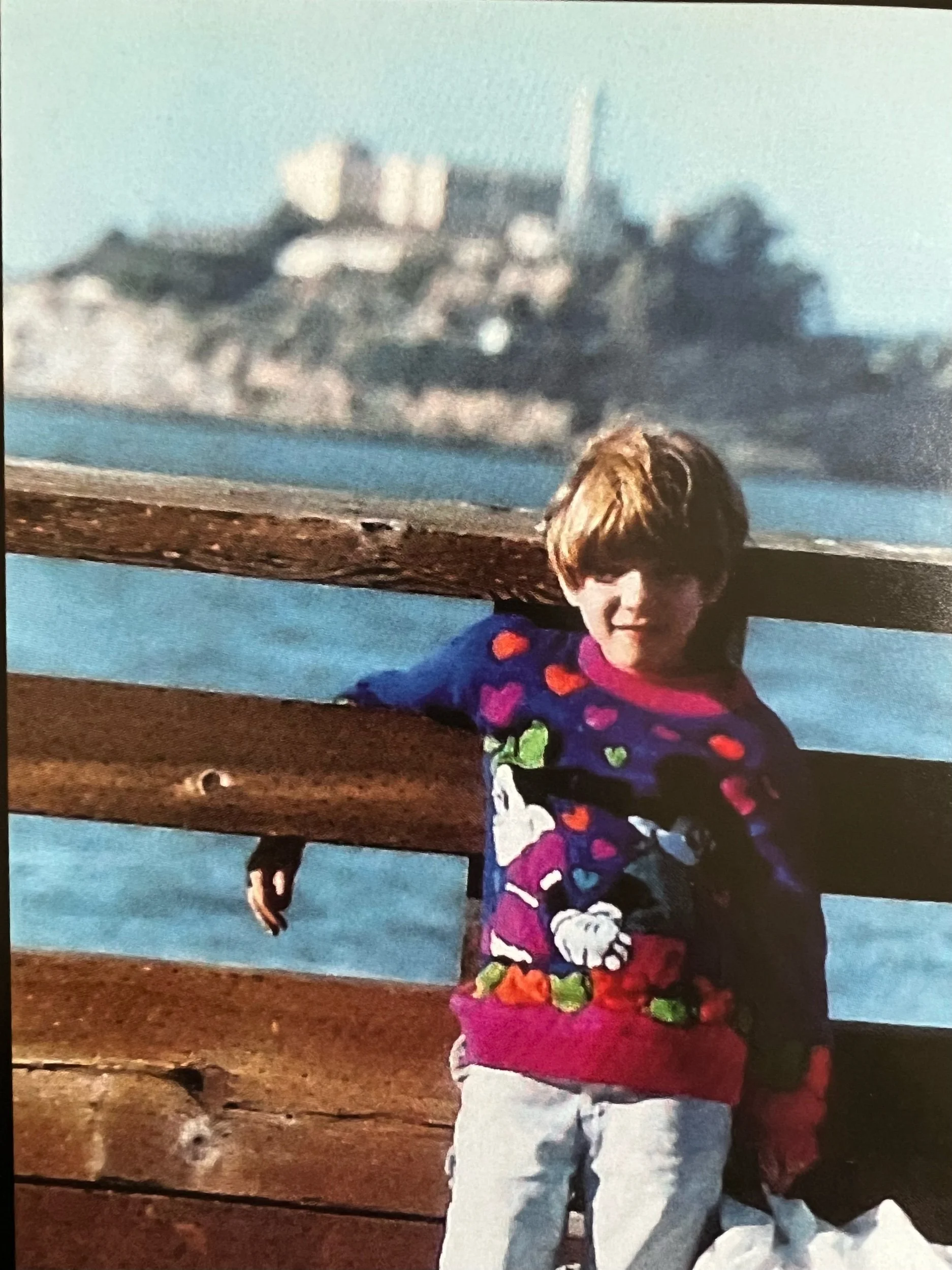 That quintessential 90’s outfit- ribbed spaghetti strap dress over a blank white tee. Posing in front of Alcatraz because I had already decided I liked doing weird shit like that.
